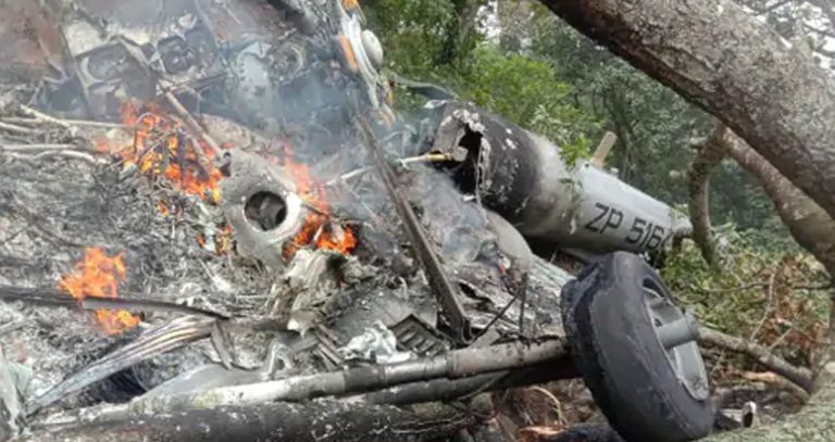भारतमा रक्षा प्रमुख चढेको हेलिकप्टर दुर्घटना हुँदा ११ जनाको मृत्यु