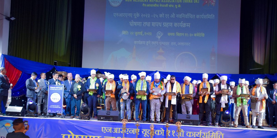 कार्यक्रमका प्रमुख अतिथी एनआरएनए यूकेका पूर्वअध्यक्ष योगेन क्षेत्री र निर्वाचन समिति पदाधिकारीले निर्वाचित कार्यसमितिलाई फेटा, खादा र प्रमाणपत्र प्रदान गरेका थिए ।