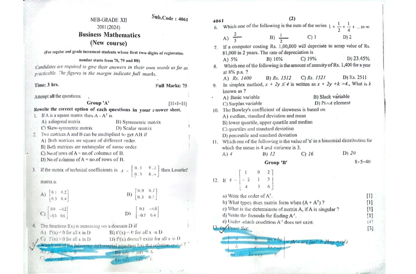 क्रक्षा १२ को बिजनेस म्याथमा सोधिएका कुनै पनि प्रस्नहरु कोर्ष भन्दा बाहिरबाट नसोधिएको उनले प्रस्ट पारे ।