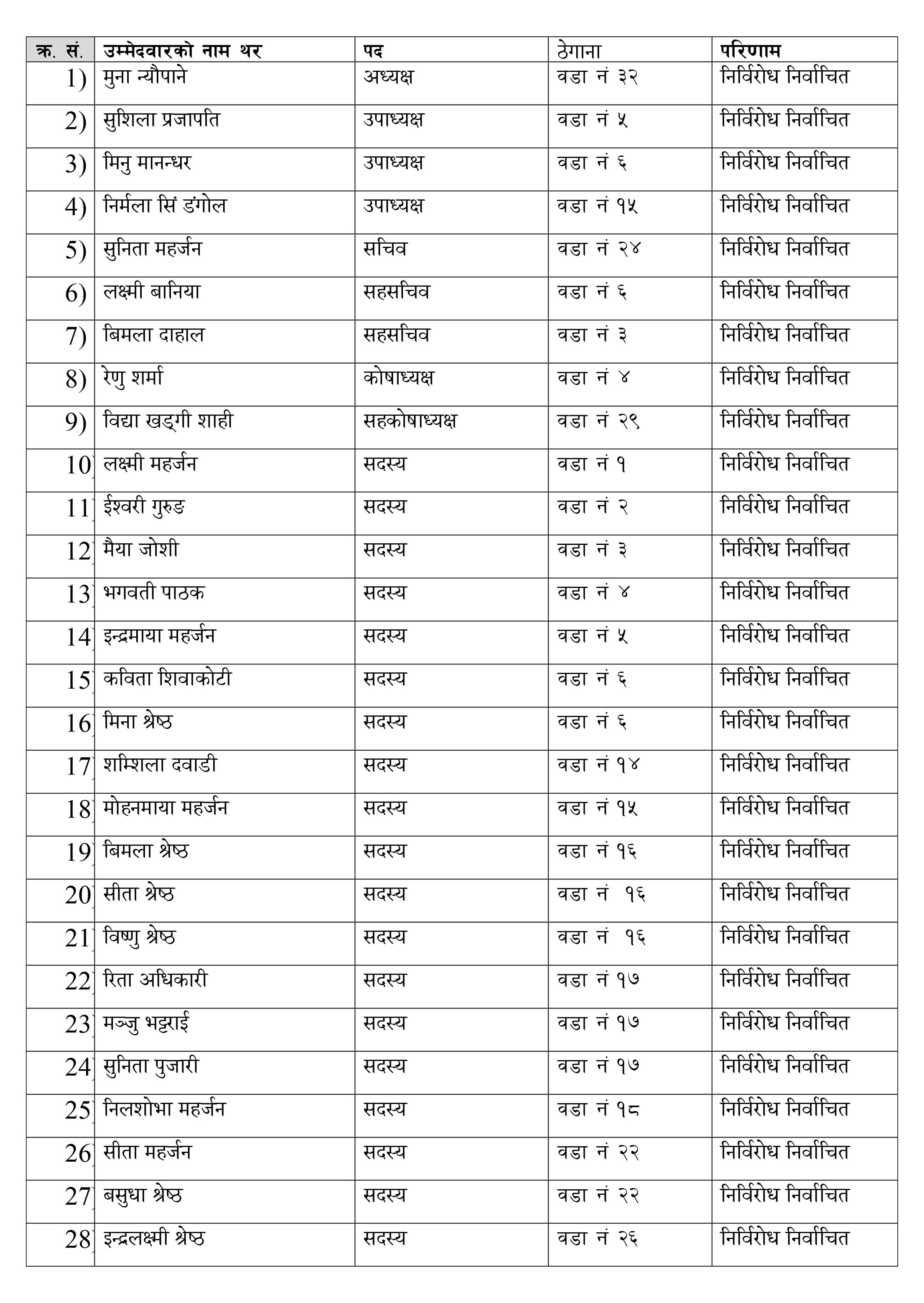 कविता बस्नेत श्रेष्ठ अध्यक्ष, रुद्रा कार्की संचालक र पुर्णा श्रेष्ठ सदस्य रहेको बन्दसत्रमा अध्यक्ष मुना न्यौपानेले संगठनको गतिबिधि र भावि योजना पेश गरेकी थिइन । यसैगरी राधा शर्मा लुइँटेल संयोजक तथा पार्वती अधिकारी, रचना महर्जन, नरेश श्रेष्ठ र कमला कार्की ढोली रहेको निर्वाचन समितिले निर्विरोध प्रक्रियाबाट समिति चयन भएको घोषणा गरेको थियो । यसअघि सो संगठनकी केन्द्रीय सचिव तथा काठमाण्डौ ईन्चार्ज शु्शिला पौडेलले समितिको नामावली प्रस्ताव गरेकी थिइन् ।